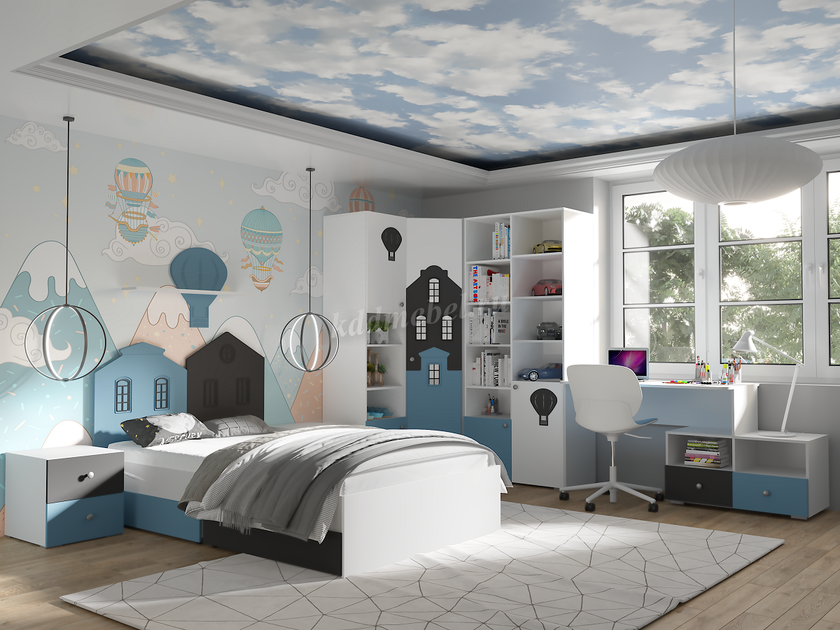 Стол письменный Сити с ящиками 332.08 (Белый/Графит софт/Голубой)